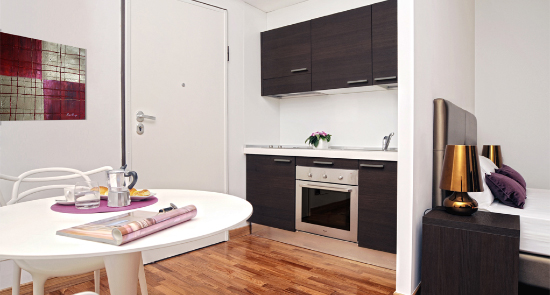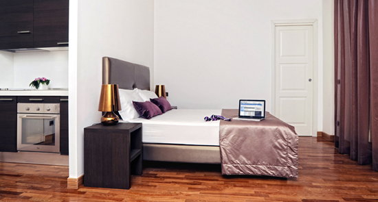 Varcato l’ingresso del Suites Rome 55 verrai conquistato dalla perfetta armonia di design e linee moderne che renderanno i tuoi soggiorni piacevoli ed esclusivi. Suites Rome 55 è una residenza formata da 25 moderni appartamenti e suites, ideale per lunghi periodi ma pronto ad accoglierti anche per brevi soggiorni grazie alla formula «Comfort». Tutti gli appartamenti e suites sono arredati con un tocco moderno, arricchiti con ricercati complementi di design come le lampade Kartell e articoli del celebre Philippe Starck.
